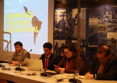 El conversatorio final de la jornada se tituló “Gobernanza tributaria en el contexto nacional: desafíos y proyecciones para Chile” y contó con las intervenciones de Jorge Atria, docente de la Universidad Católica e investigador COES, y de los diputados chilenos del Frente Amplio, Gael Yeomans, Jaime Sáez y Camila Rojas, además de representantes de OXFAM Colombia y el Centro Contribuye.
